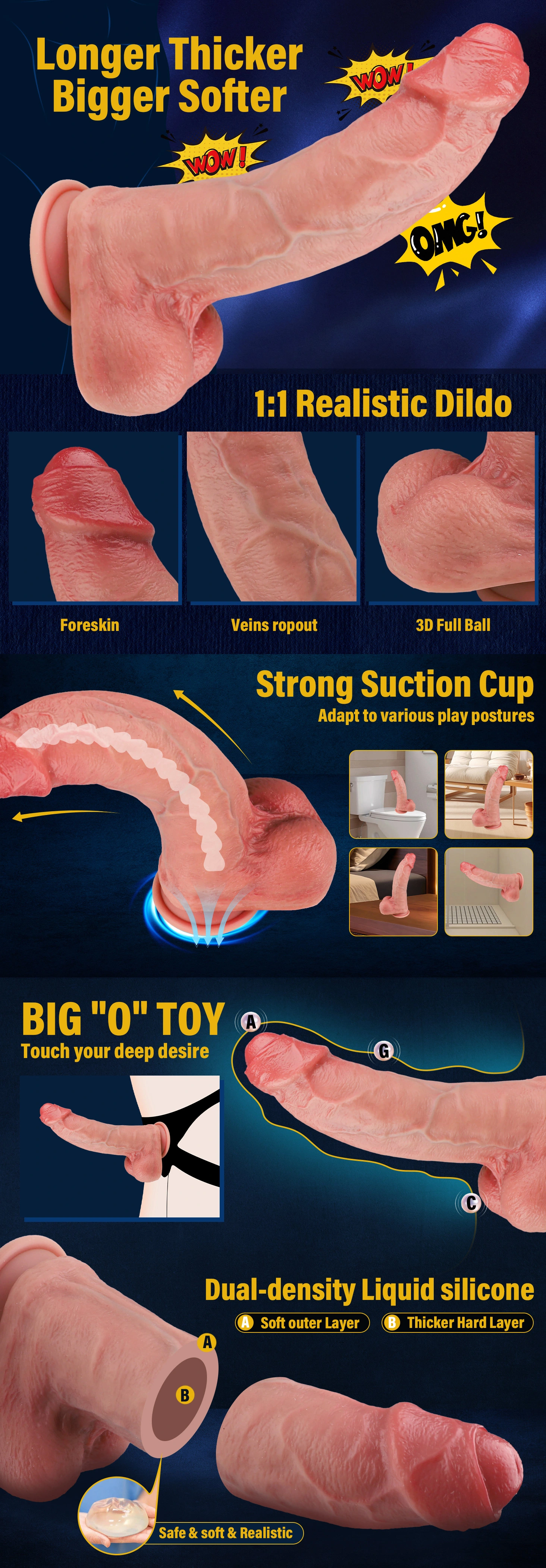 Experience realistic pleasure with our Soft Foreskin Dildo, ideal for solo play and roleplay. Its thick dual-density silicone mimics authentic feel—soft head and textured foreskin deliver layered stimulation. Generous size (8.07 inch, 2.2 diameter) ensures intense fullness without bulk; upturned tip targets sensitive spots (use water-based lube). Ultra-realistic details include raised veins, full balls, natural skin folds, and uncut foreskin for immersive sensation. Body-safe construction features a soft outer layer over a firm core for comfort and safety. Versatile with a strong suction cup for hands-free use on any smooth surface and strap-on harness compatibility. Discreetly packaged in a plain box to protect your privacy.