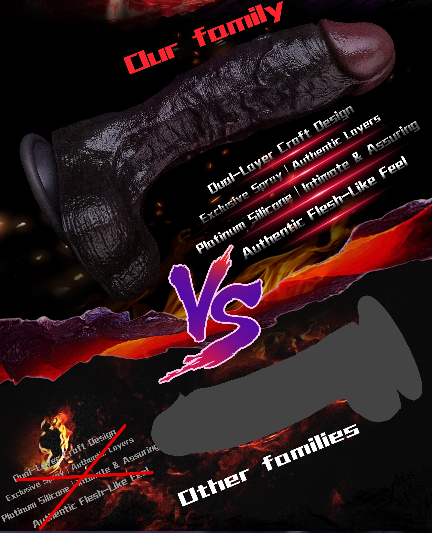 DeAndre 9.44" x 1.92" Huge Black Soft Dual Density Dildo